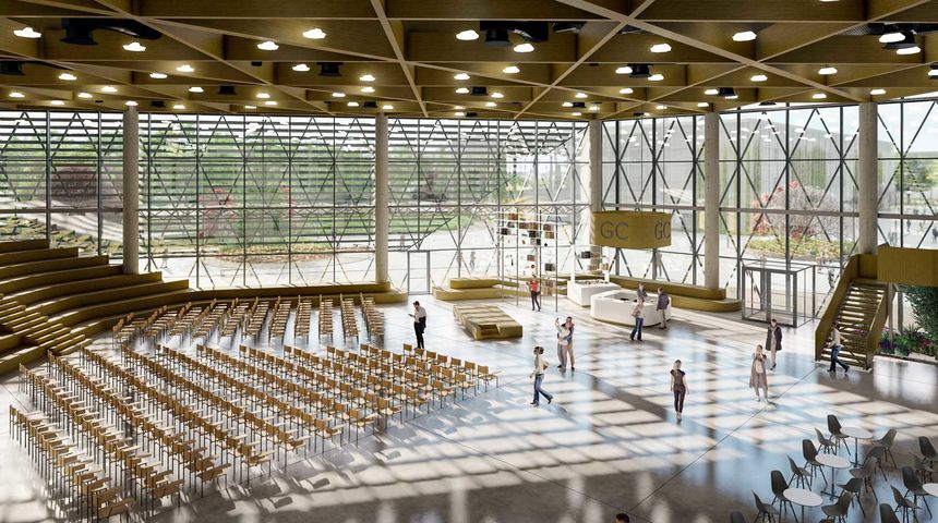Osijek, 30.7.2022. – Na ulazu u grad Osijek, na gradilištu uz poznatu S cestu koja spaja zapadni i južni dio grada, radovi su u punom jeku. Nazire se konačni izgled I. zgrade Gospodarskog centra.