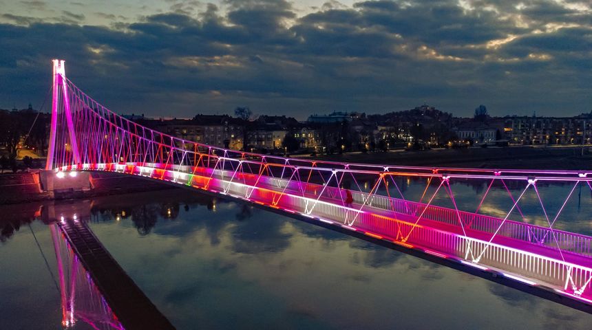 I osječki pješački most spreman je za utakmicu! Nakon dvije godine ponovo zasvijetlio