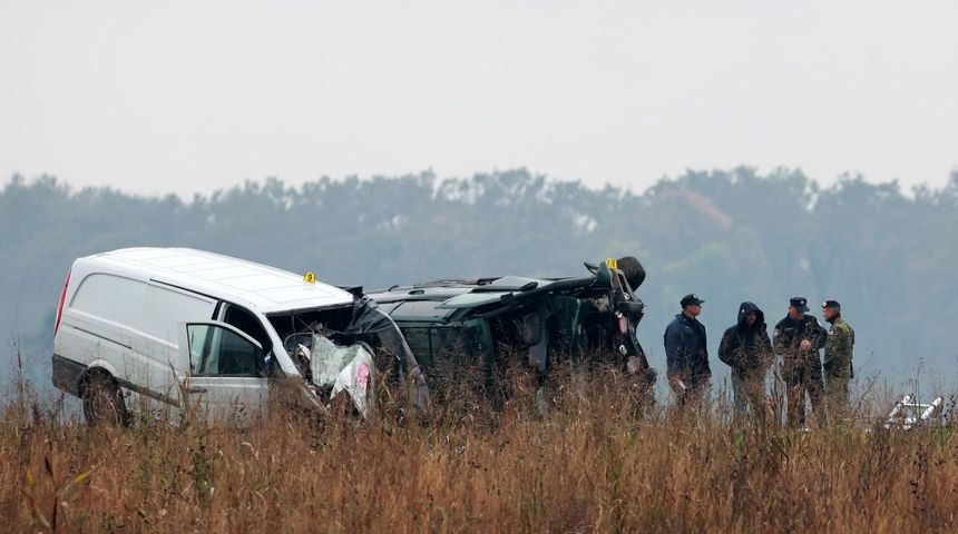 Vinkovci, 11.11.2023. – Objavljene su i fotografije s mjesta nesreće u kojoj je poginula jedna osoba. Na izlazu iz Vinkovaca prema Županji došlo je nesreće u kojoj su se sudarili kombi i automobil. Vozač kombija na licu mjesta je poginuo, dok je ministar Banožić koji je vozio bio prevezen u bolnicu.