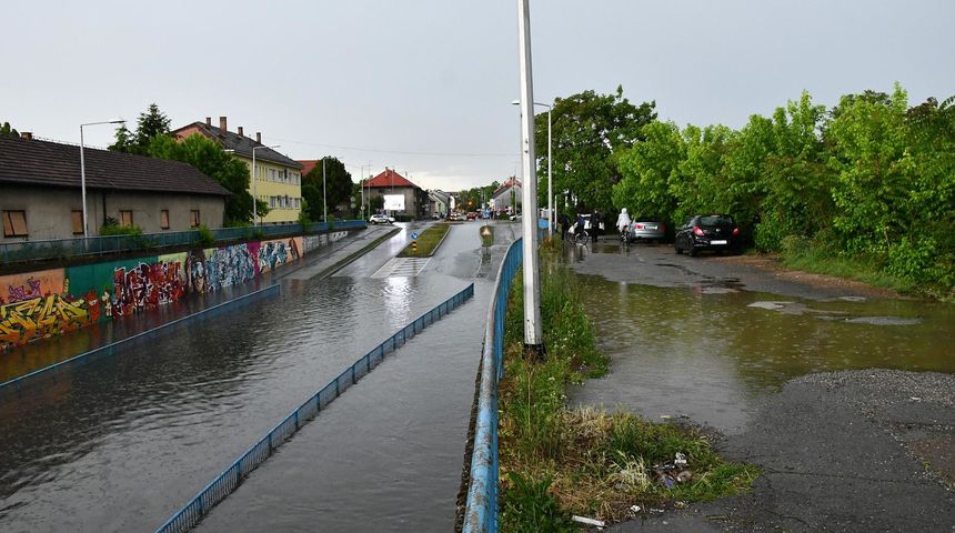 Slavonski Brod, 2.5.2024. – Snažno nevrijeme praćeno tučom i velikom količinom kiše poplavilo podvožnjake i gradske prometnice.
