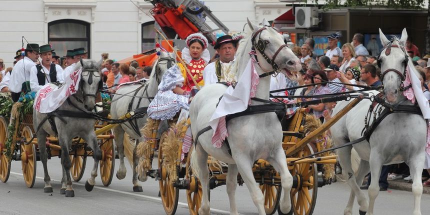 “Nek’ se čuje od Save do Drave 50. Vezovi se slave”, pjevali su članovi KUD-a Šokadija iz Strizivojne, koji su stihovima bećaraca počastili nadbiskupe i gradonačelnika Zorana Vinkovića. Rekordnih 6 tisuća sudionika u više od 60 skupina iz Hrvatske i inozemstva pokazalo je svoje bogatstvo tradicije, ljepotu narodnog ruha na svečanoj povorci koja je od malog do Strossmayerovog parka pokazala ono najbolje od tradicije. Za jubilarne Vezove prošetalo je i 50 jahača te 50 okićenih svatovskih zaprega.