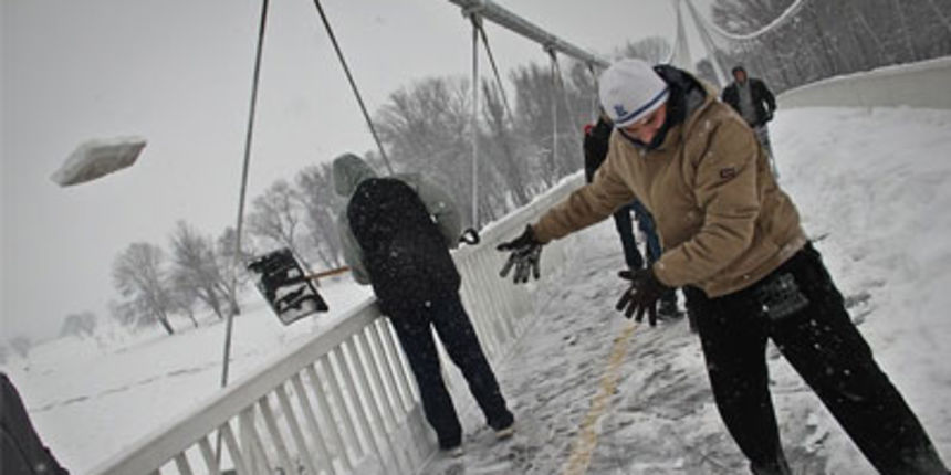 FOTO i VIDEO: Kohorta očistila pješački most od snijega