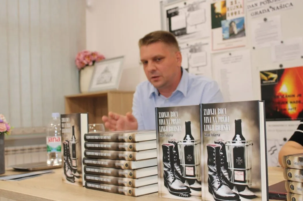 U Gradskoj knjižnici Našice jučer je održana promocija romana “Zadnja boca vina na prvoj liniji bojišta“ osječkog pisca Gorana Srdarevića, povodom obljetnice oslobođenja Našica od tzv. JNA te Dana branitelja. Povodom obljetnice našička je knjižnica odlučila pozvati Gorana da predstavi svoj roman. Događaj je privukao brojnu publiku, a održan je u novoobnovljenom prostoru knjižnice.