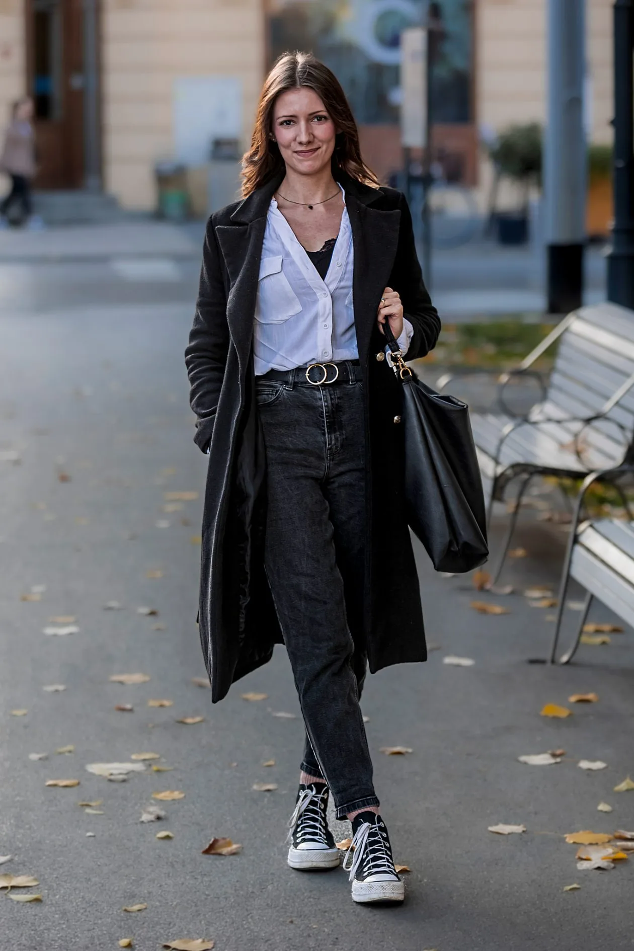 Ova Osječanka zračila je jednostavnom elegancijom i lakoćom. Klasična bijela košulja, u kombinaciji s crnim kaputom i trapericama visokog struka, stvorila je savršen spoj ležernog i chic stila. Visoke tenisice i velika torba dodale su notu urbane praktičnosti, dok osmijeh i samouvjeren hod pokazuju da pravi stil dolazi iz stava.