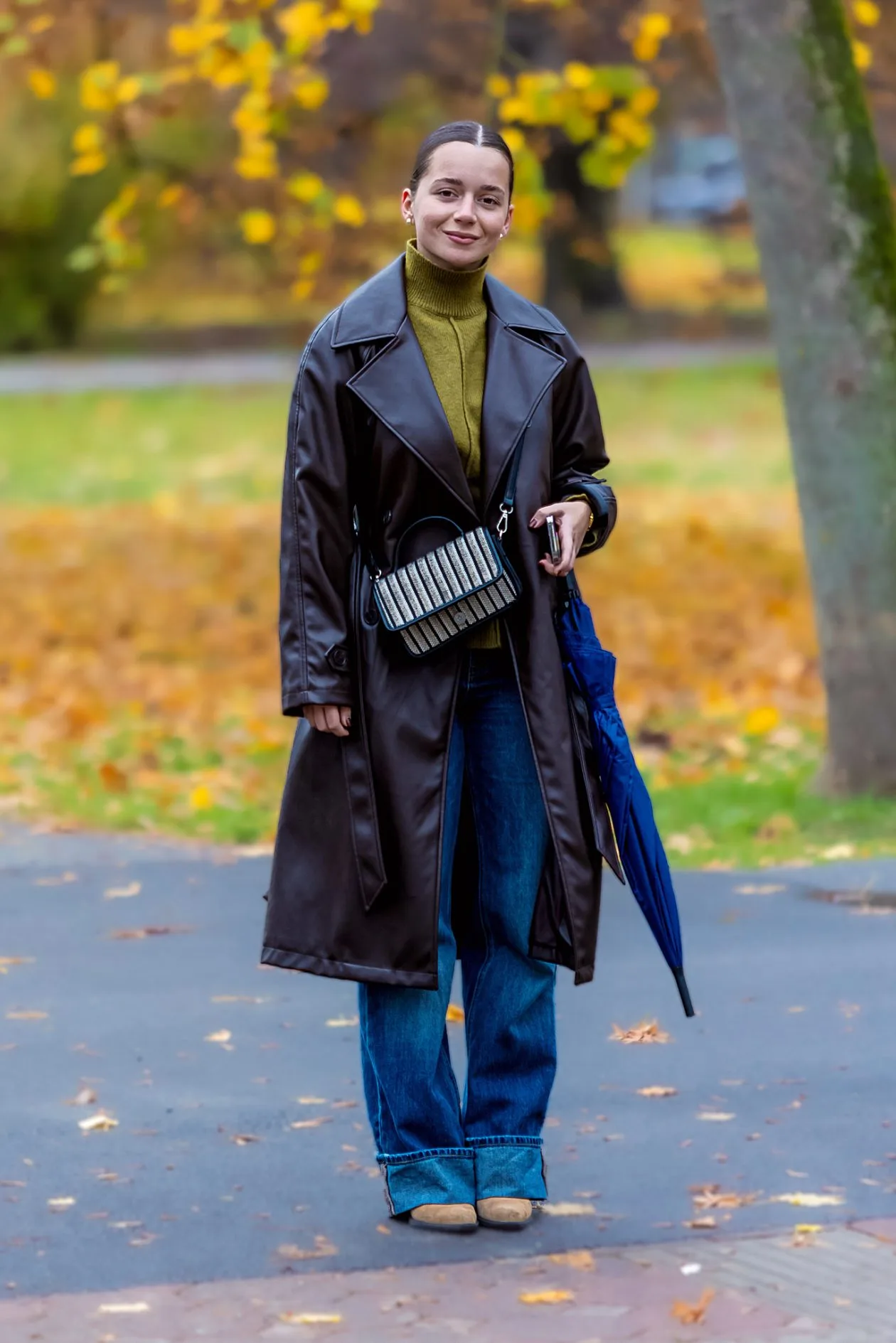 Ova legica savršeno spaja eleganciju i ležernost u jesenskoj modnoj priči. Tamnosmeđi kožni baloner daje dozu sofisticiranosti, dok maslinastozeleni pulover unosi toplinu i svježinu u outfit. Široke traperice i bež gležnjače prizemljuju kombinaciju, stvarajući opušten, ali promišljen look idealan za šetnju gradom. Torbica s prugastim uzorkom dodaje dinamiku, a uredna frizura i diskretan osmijeh otkrivaju samouvjerenu ženu s besprijekornim osjećajem za stil.