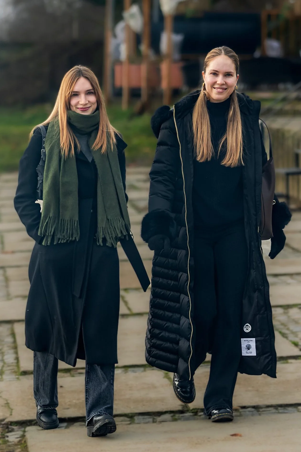 Crni tonovi dominiraju, ali svaka kombinacija ima svoj karakter. Dugi kaputi daju ozbiljnost i toplinu, dok šal i puffer jakna unose casual, gradski štih. Jednostavno, skladno i jako nosivo za svaki dan.