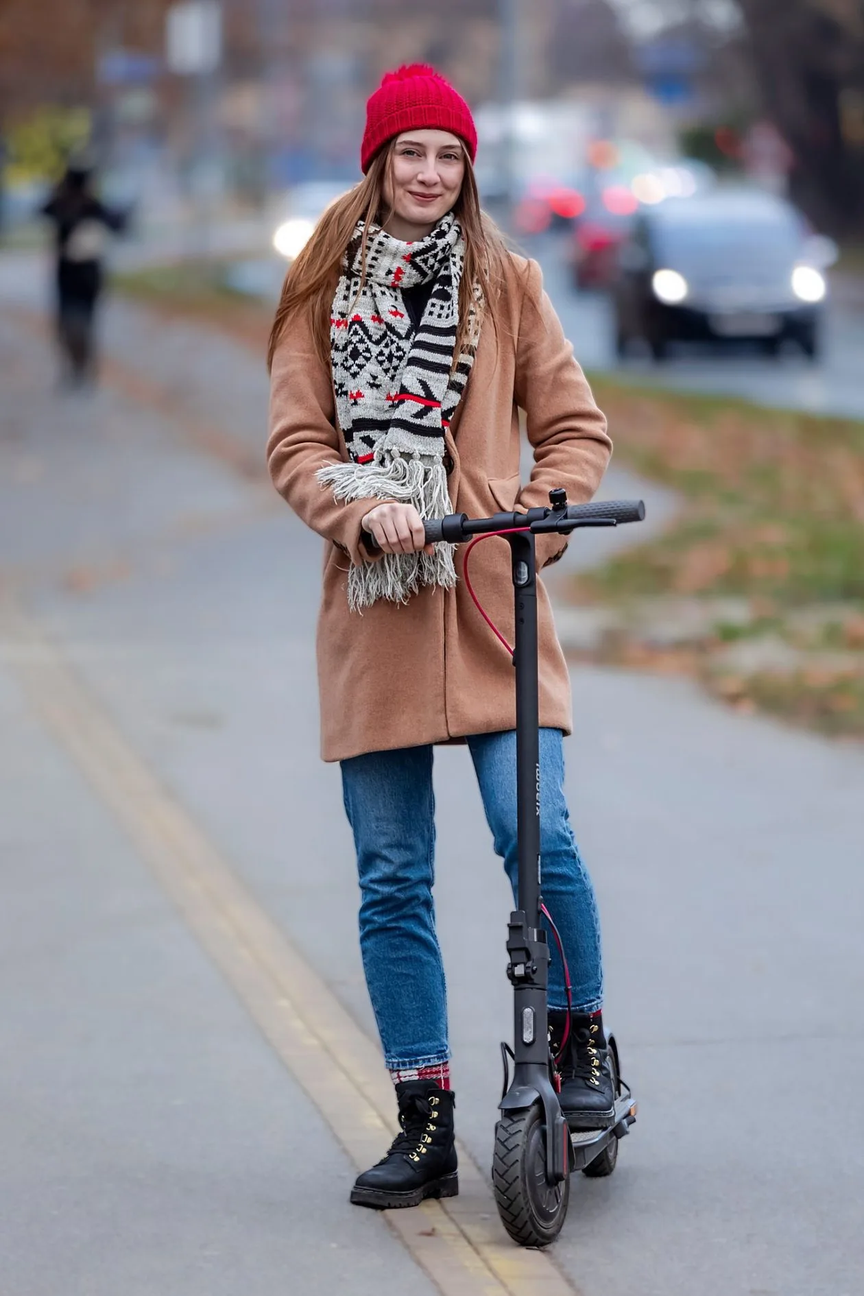 Bež kaput i traperice čine klasičnu bazu, a crvena kapa i šal daju cijelom looku živost i karakter. Praktično, urbano i baš simpatično za zimske šetnje gradom. Romobil savršeno zaokružuje look – praktičan, urban i baš u duhu gradske svakodnevice. Daje kombinaciji mladenačku, modernu vibru i pokazuje da stil i funkcionalnost mogu ići zajedno.