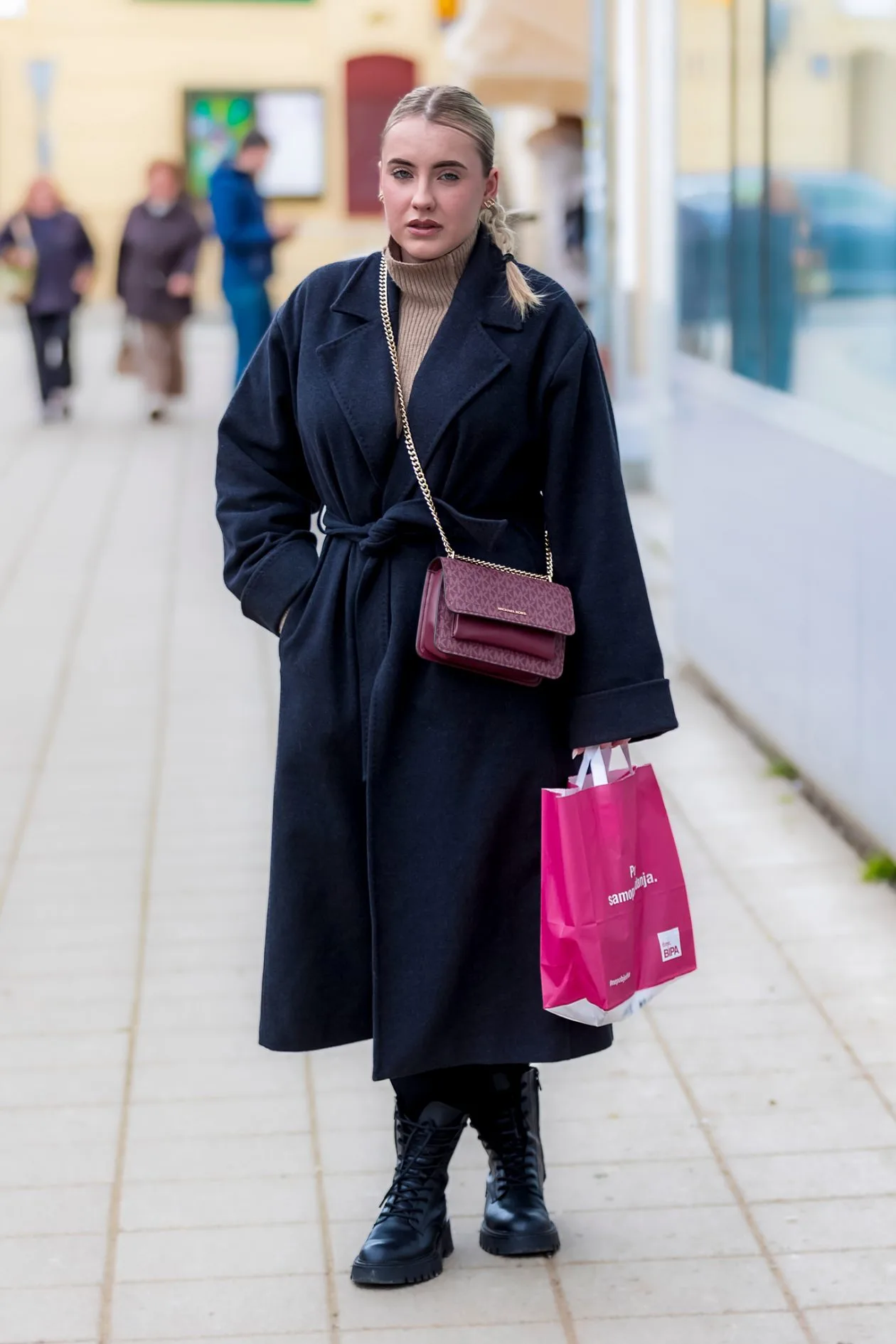 Na Trgu Ante Starčevića ova legica bira siguran, ali vrlo dotjeran zimski minimalizam. Dugi crni kaput vezan u struku lijepo oblikuje siluetu, dok topli dolčevita tonovi i bordo torbica s lancem daju dozu elegancije. Kombinacija robusnih čizama i shopping vrećice otkriva praktičnu “gradsku” priču – stil koji bez napora spaja funkcionalnost i chic.