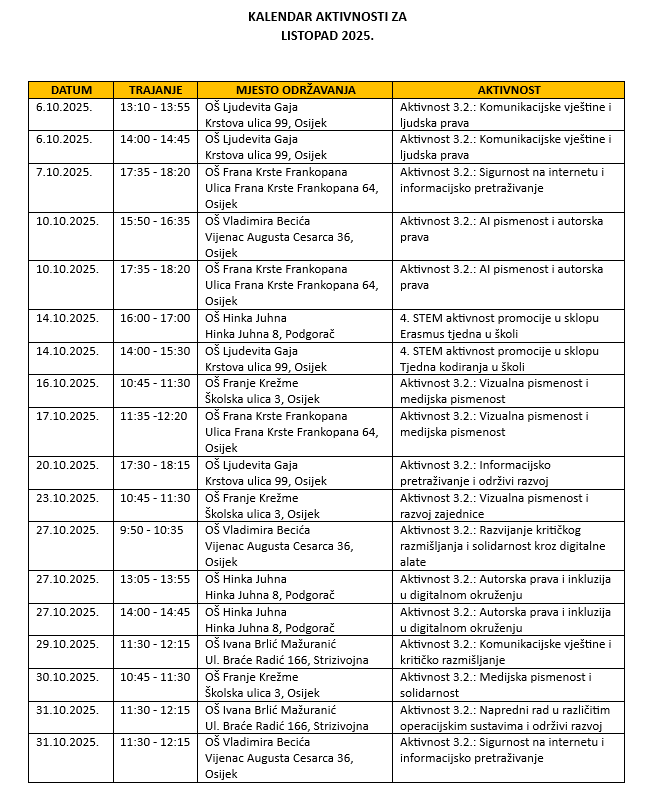 Radionice se provode kroz projekt „STEMpo – Ritam zajednice: Digitalne kompetencije za humani razvoj“ u sljedećim osječkim školama: OŠ Frana Krste Frankopana, OŠ Franje Krežme, OŠ Ljudevita Gaja, OŠ Vladimira Becića te u OŠ Hinka Juhna u Podgoraču i OŠ Ivana Brlić Mažuranić u Strizivojni.