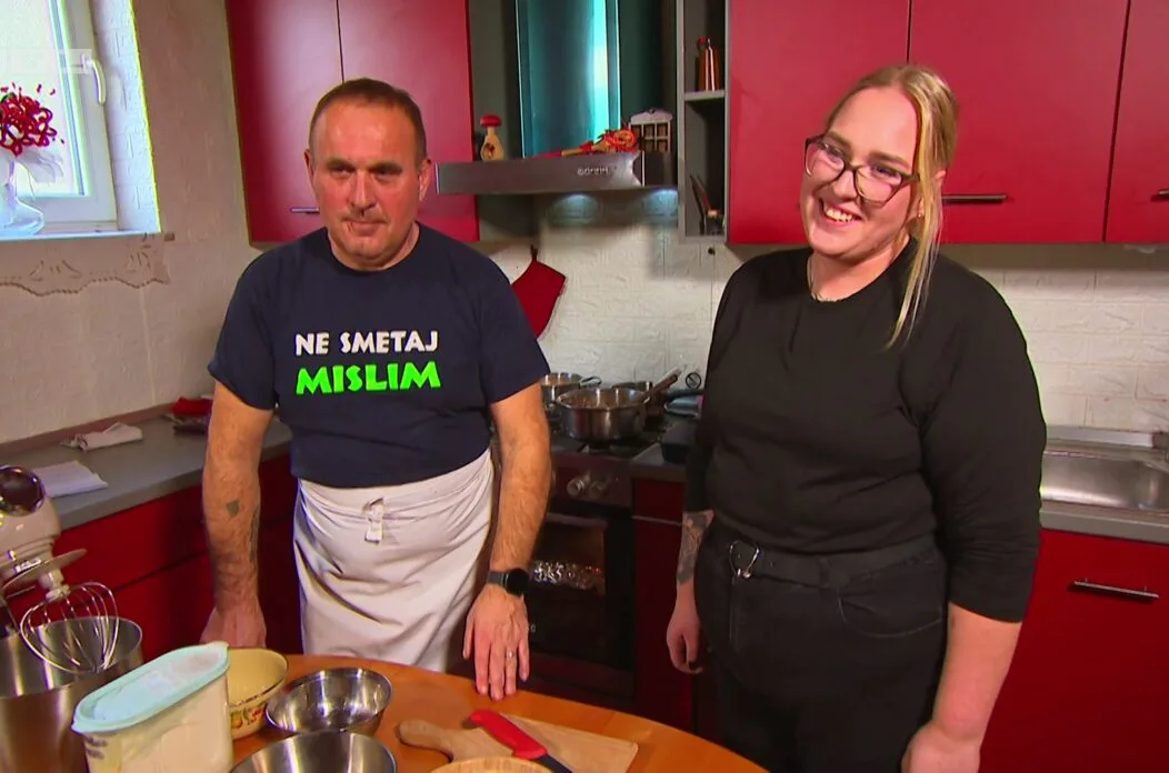 Domaćin je zatim pripremao desert ‘Šuć-muć pa prolij’, jednostavan čokoladni biskvit s čokoladnom kremom. S pripremom mu je pomogla kćer Melani koja ga je i prijavila u show. „Kod nas je to uvijek tako u kući jer smo svi u folkloru, cijela obitelj i onda je kod nas uvijek tako raspjevano“, komentirala je Melani kad je njen tata tijekom pripreme zapjevao. Nakon kćeri, u pomoć s desertom pristigla mu je i unučica Lea. Preostalo je pripremiti predjelo ‘Graničarsko oko’, košarice od lisnatog tijesta s kremom od avokada i okruglice od šunke, sira i jaja uvaljane u sezam.