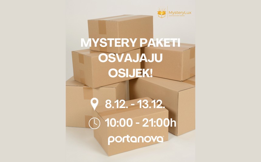 Uskoro u Portanovi: Mystery Lux paketi. Stiže nešto što mnogi jedva čekaju – Mystery Lux dolazi u Portanovu! Od 8. do 13. prosinca u prizemlju, u prostoru pored Bershke, čeka vas jedinstveno iskustvo otkrivanja sadržaja likvidacijskih i neisporučenih paketa.