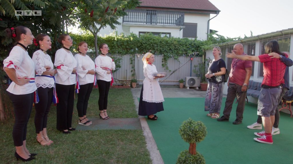 Snežana se pripremila za svoje goste i odjenula kao prava Šokica, a Marin, Mladen i Marjan za posljednju večer odlučili su staviti kravate. Gostima su na dočeku zapjevale djevojke iz KUD-a Josipovac, a i domaćica sa spremnim aperitivima.