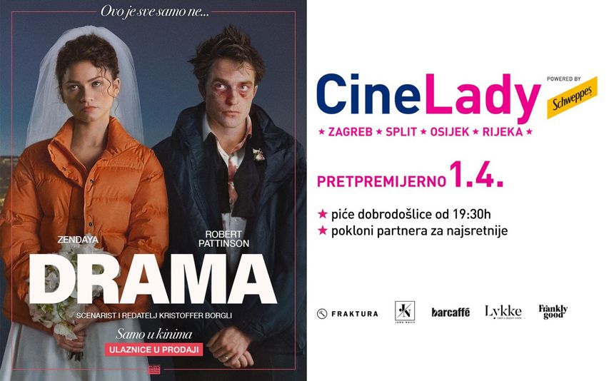 Ljubiteljice filma ne smiju propustiti CineLady večer u srijedu, 1. travnja, uz pretpremijeru filma „Drama“ sa Zendayom i Robertom Pattinsonom. Uz piće dobrodošlice i poklone, očekuje vas savršena večer za opuštanje i druženje.