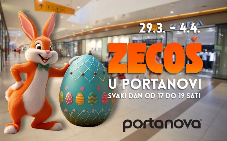 Zecoš donosi uskrsnu čaroliju. U Portanovu je stigao i omiljeni uskrsni gost – Zecoš! Svaki dan, sve do 4. travnja, od 17 do 19 sati, razveseljava male i velike posjetitelje slatkim iznenađenjima i odličnim raspoloženjem. Ne propustite priliku za fotografiju i trenutke koji će uljepšati blagdansko vrijeme.