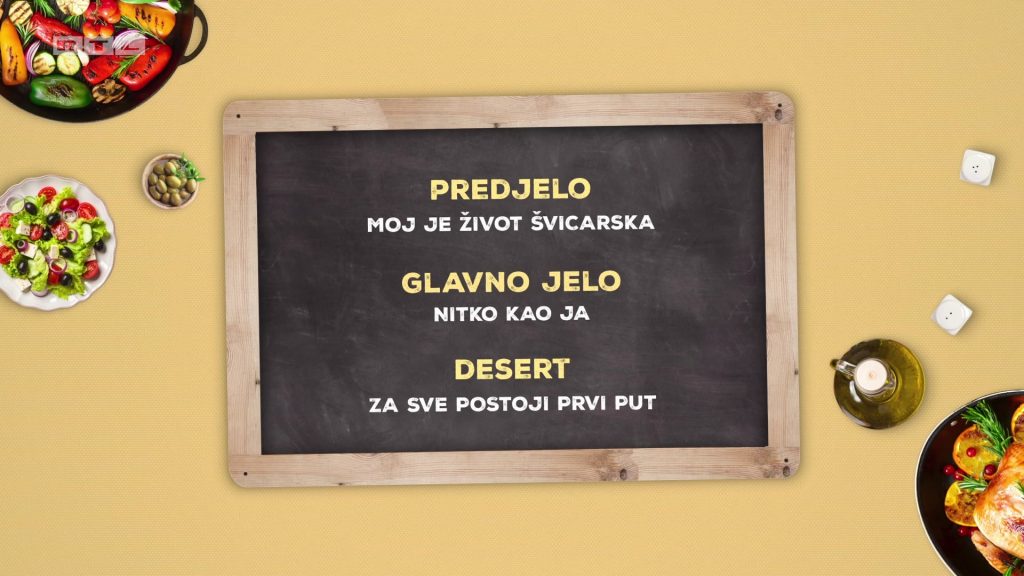 Svojim gostima Manda će pripremiti predjelo ‘Moj je život Švicarska’, glavno jelo ‘Nitko kao ja’ te desert ‘Za sve postoji prvi put’. „S obzirom na to da ima veliku obitelj tu se mora i dobro kuhati! Ona sigurno kuha s ljubavlju i što god napravi sigurno će biti dobro“, reći će Dražen, a Sanela priznati: „Mislim da je Manda jaka konkurencija jer je kuharica po struci kao i ja.“