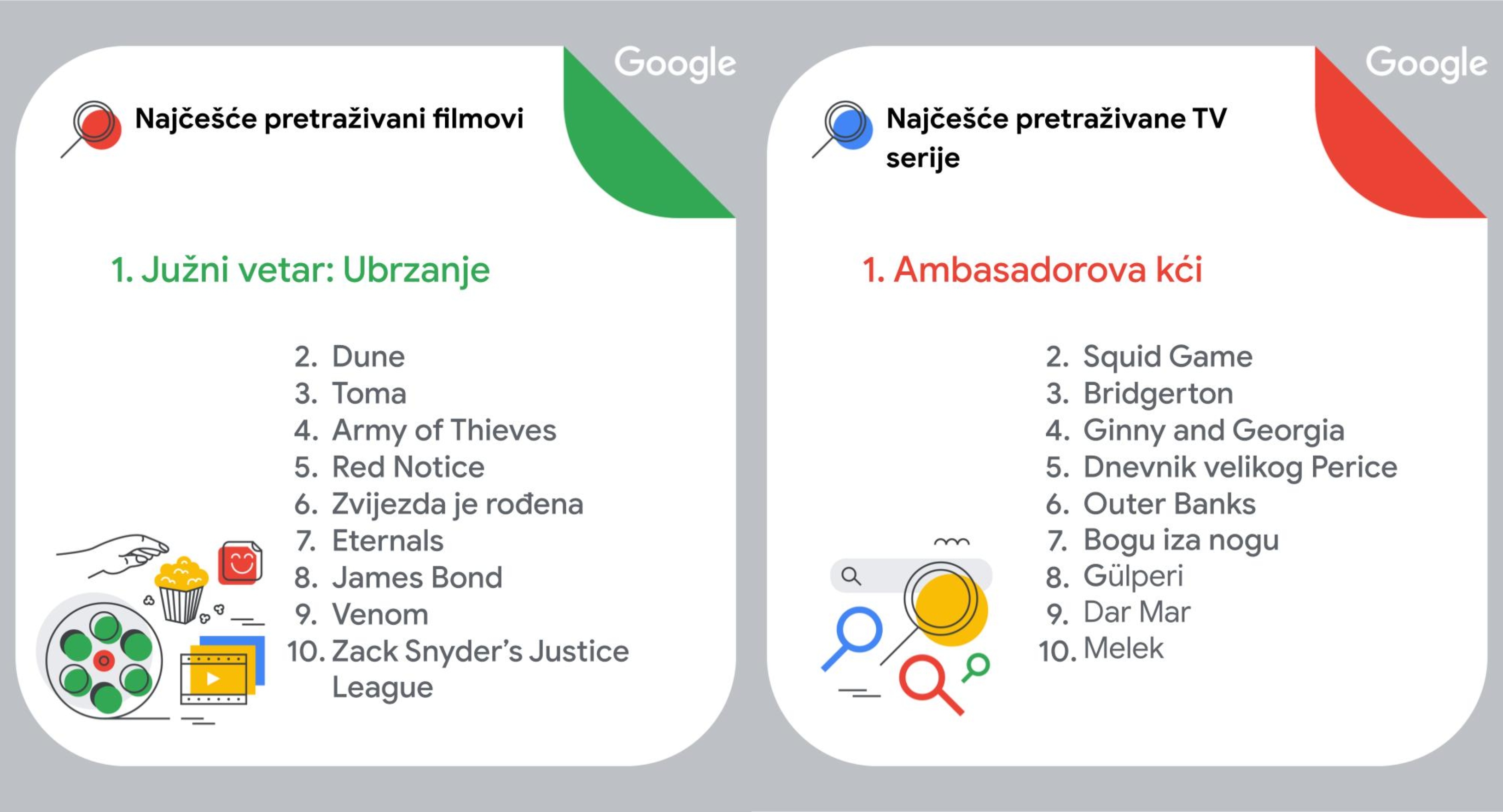 popularnih Squid Game i Bridgerton. A najčešće pretraživane