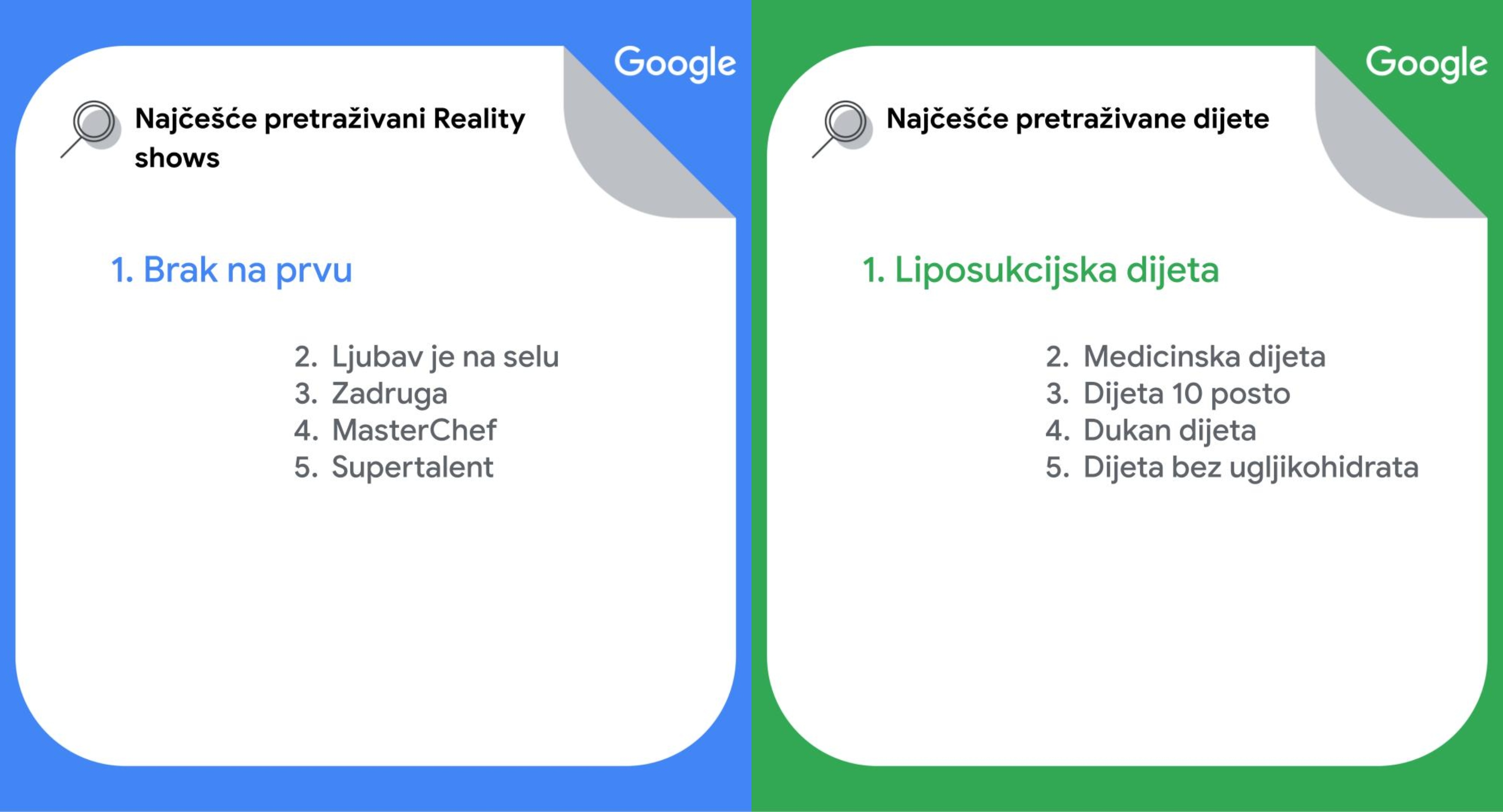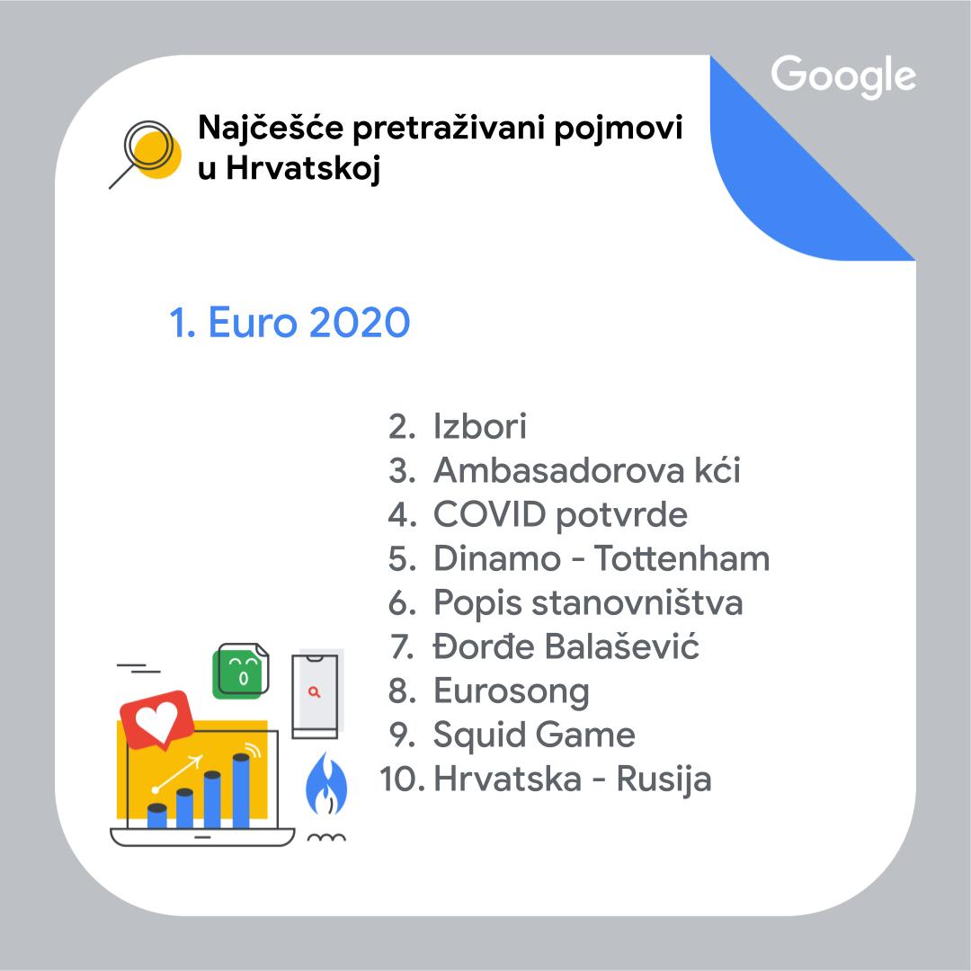 Na temelju pretraživanja u Hrvatskoj tijekom 2021. godine, Google