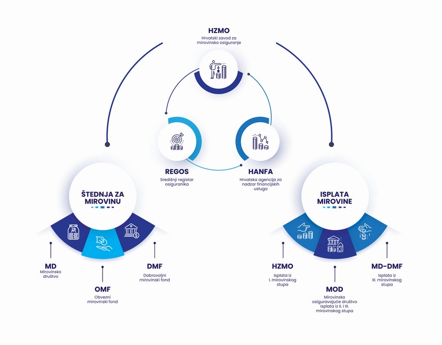 Za početak, važno je znati da se sustav mirovinskog osiguranja temelji na tri stupa. Mirovinsko osiguranje na temelju međugeneracijske solidarnosti (I. stup) i osiguranje na temelju individualne kapitalizirane štednje (II. stup) predstavljaju obvezno mirovinsko osiguranje i doprinose za njih poslodavac izdvaja iz vaše plaće, dok III. stup nije obvezan i predstavlja dobrovoljno mirovinsko osiguranje.
