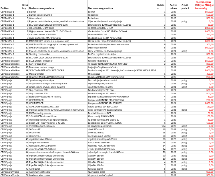 Predmet prodaje su osnovna sredstva kako slijedi: