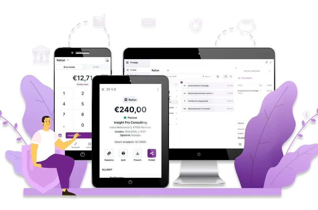 Novim sustavom obuhvaćena je fiskalizacija čak i bezgotovinskih računa, što znači da izdavanje računa u Wordu, Excelu i sličnim alatima više nije dopušteno. Uz to, uvedena je obveza zaprimanja i slanja eRačuna, eArhive i eIzvještavanja. Tisuće poduzetnika već primaju eRačune, a ako ih ne možete zaprimiti, pošiljatelj je dužan prijaviti vas Poreznoj upravi – što može rezultirati kaznama od najmanje 1.320€.