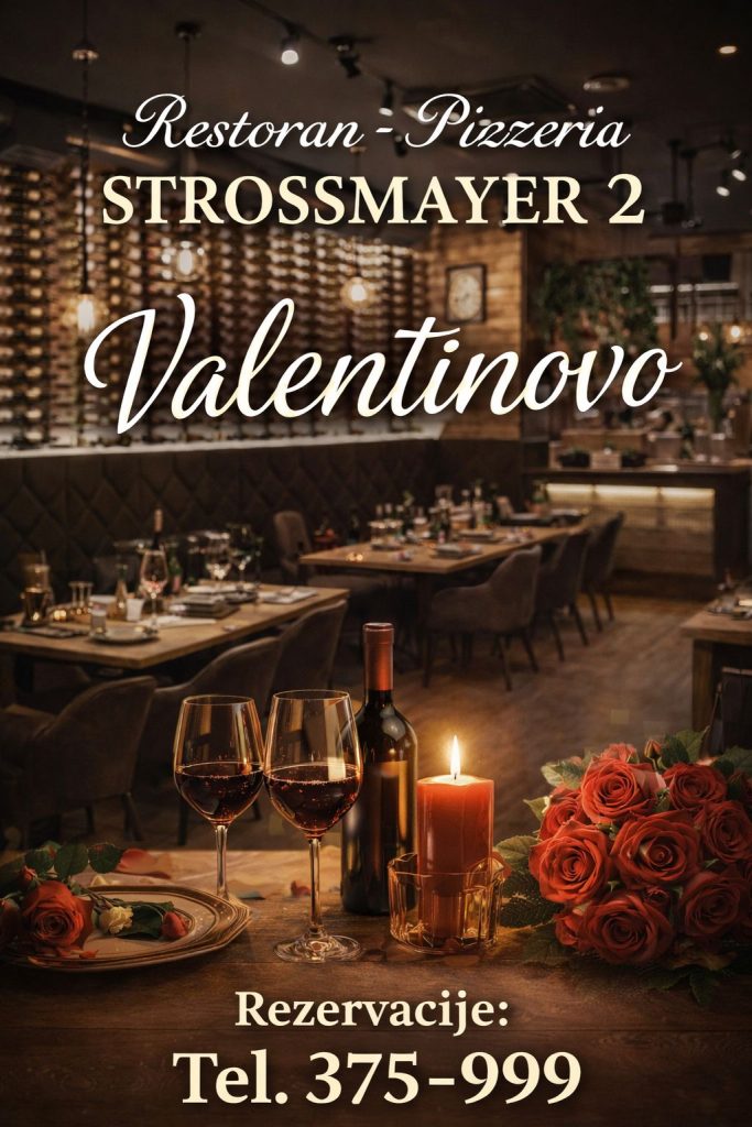 Valentinovo 2026. u restoranu Strossmayer 1 obećava vrhunski gastro doživljaj za sve ljubitelje fine hrane i romantične atmosfere. Restoran je pripremio pet posebno osmišljenih menija, koji će zadovoljiti svaki ukus i učiniti večer za dvoje nezaboravnom.