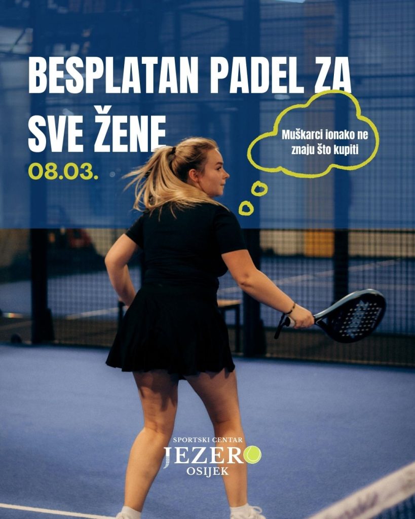 Povodom Međunarodnog dana žena, Sportski centar Jezero u Osijeku ove nedjelje, 8. ožujka, daruje svim ženama besplatne termine za igru na padel i squash terenima.