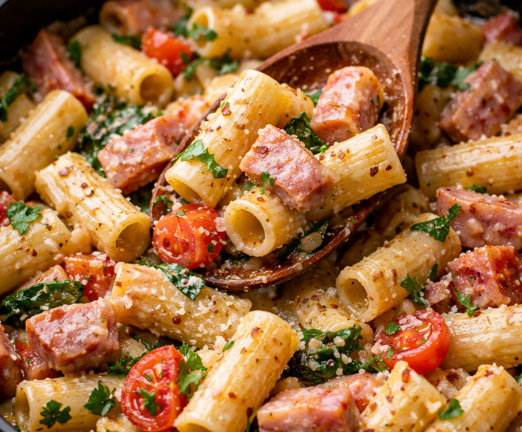 Ukusna je i zapečena tjestenina sa sirom i šunkom. Skuhana tjestenina se pomiješa s šunkom, vrhnjem, jajetom i polovinom sira. Smjesa se prebaci u posudu za pečenje i poravna. Preostali sir se rasporedi po vrhu. Peče se na 180°C 20–25 minuta dok površina ne dobije zlatnu koricu.