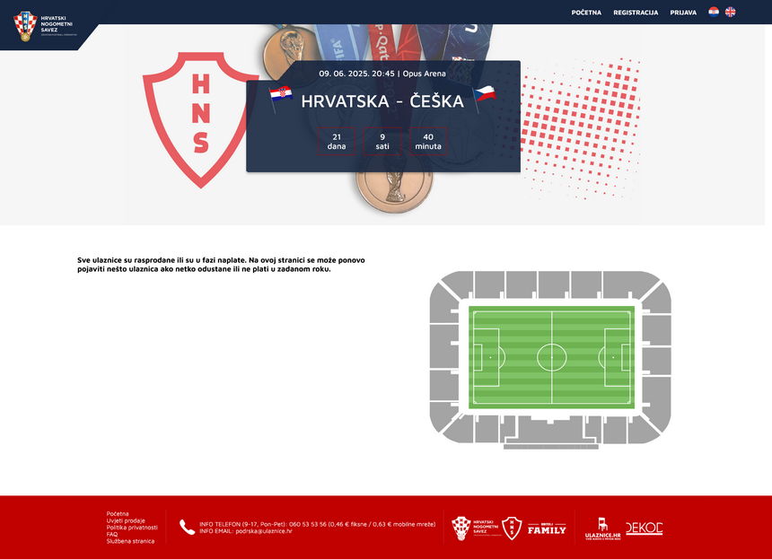 Ulaznice za kvalifikacijsku utakmicu za Svjetsko prvenstvo između Hrvatske i Češke, koja će se igrati 9. lipnja na osječkoj Opus Areni, rasprodane su online u”roku odmah” nakon puštanja u prodaju.