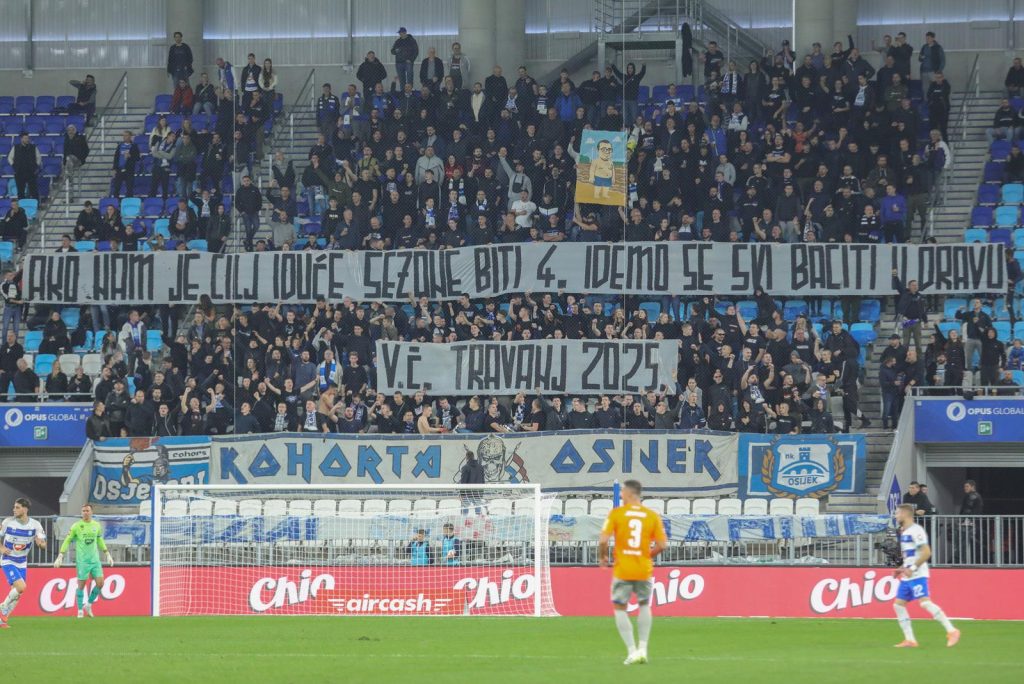 Dugo “kop” nije bio puniji, a tijekom cijelog susreta davali su ton utakmici. U prvom dijelu sjetili su se i Uprave kluba, a direktoru Vladimiru Čoharu posvetili su i poruku. Citirali su njega samoga kad je izjavio kako se svi kolektivno trebamo baciti u Dravu ukoliko nam je domet četvrto mjesto. Dojma smo kako bi u trenutnoj situaciji svi bili itekako sretni da je momčad na toj poziciji.