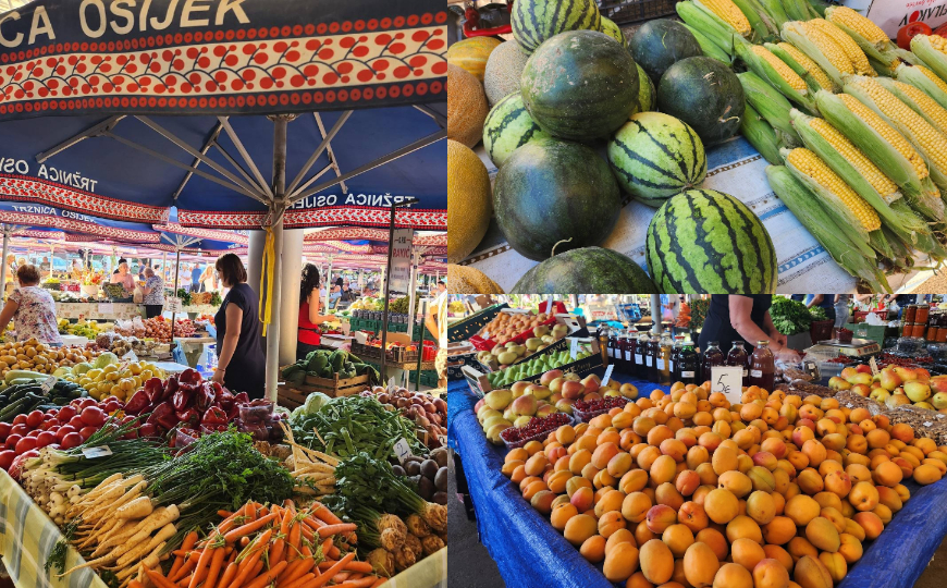 Subotnje jutro u Osijeku tradicionalno je rezervirano za šoping na glavnoj gradskoj tržnici, a izuzetak nije bila ni ova ljetna subota. Mnogi Osječani i njihovi gosti krenuli su po svježe namirnice, sigurni da će pronaći sve što im treba za vikend.