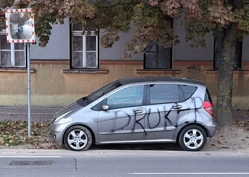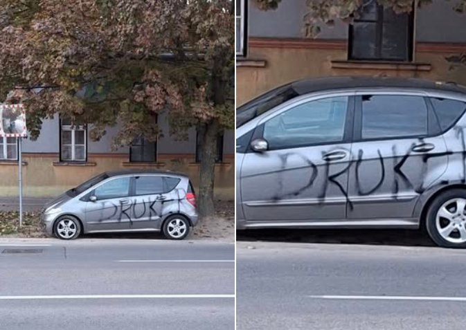 Jutros je u Divaltovoj ulici u Osijeku prolaznicima za oko zapeo automobil s vukovarskim registracijama koji je tijekom noći išaran sprejem. Na bočnoj strani vozila ispisana je velika crna poruka “DRUKER”, a automobil je parkiran uz rub ceste, u blizini pješačke staze.