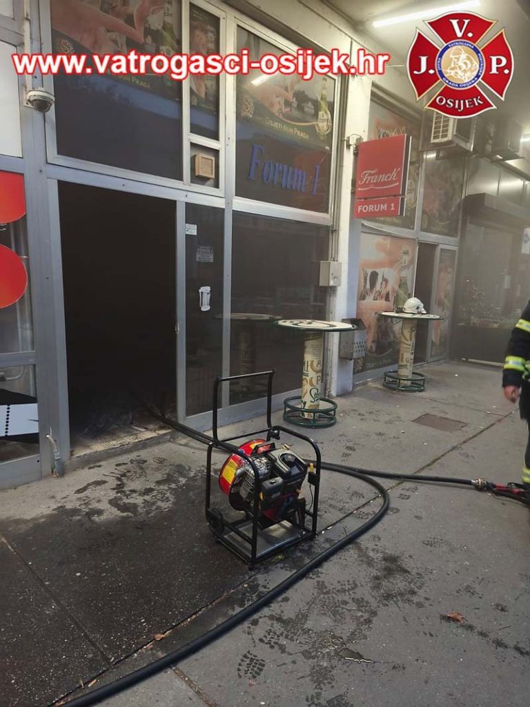 Jedan od najstarijih osječkih ugostiteljskih objekata Forum 1 na osječkoj tržnici izgorio je danas u požaru koji je izbio oko 16 sati.