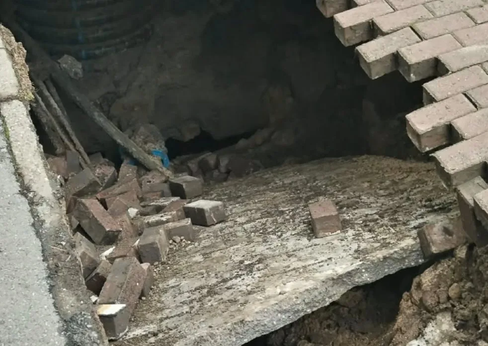 Fotografije koje je poslao naš čitatelj pokazuju kako je rupa poprilično velika, a sve se nalazi neposredno uz vodovodnu cijev pa se može samo pretpostaviti kako je uzrok propadanja puknuće neke od cijevi.