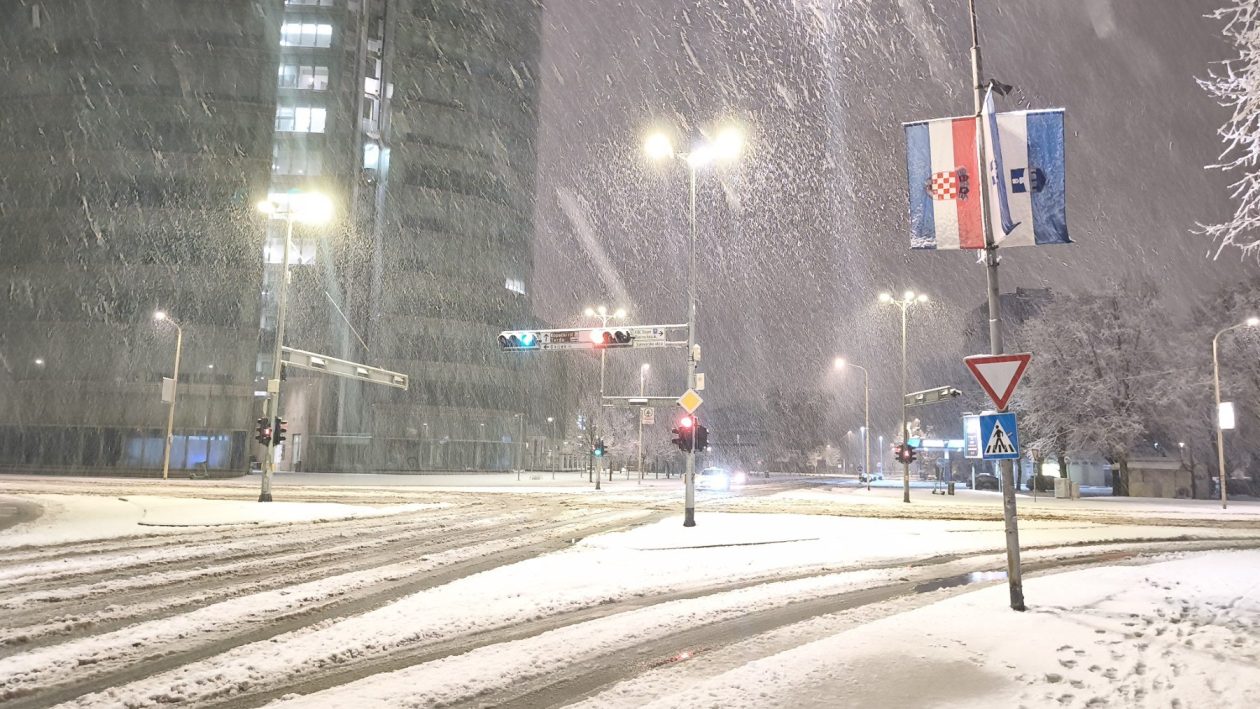 Osijek se trećeg dana 2026. godine probudio pod debelim bijelim pokrivačem. Kiša koja je sinoć snažno padala tijekom noći je prešla u gusti snijeg, pa su gradske ulice i pločnici u kratkom roku zabijeljeli.