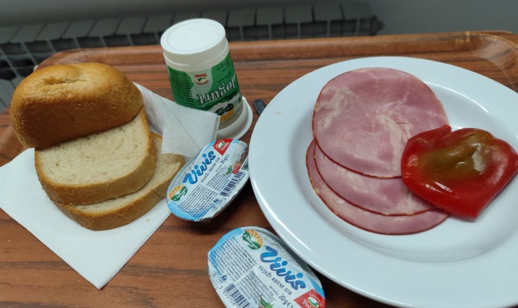Ni doručak, kaže, nije bio ništa manje obilan. Razne vrste salame, sir u trokutićima, maslac, pašteta, med, marmelada, jogurt, toplo mlijeko, jaje i čuveni čaj od šipka koji, iako je bolnički, mnogima prija, itekako uspijeva zasititi pacijenta do ručka. Kad je u pitanju večera, također je ili u kuhanom obroku ili slična doručku i svakako vrlo ukusna.