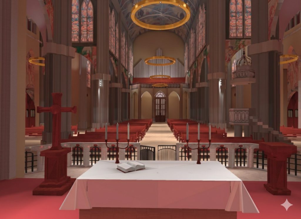 Položaj i oblik ‘prstenova’ simbolički u prostoru usmjerava pogled prema euharistijskom otajstvu te istovremeno pogled izdiže iz ovozemaljske stvarnosti i usmjerava prema nebeskoj proslavljenoj Crkvi stoji između ostalog u objavi.