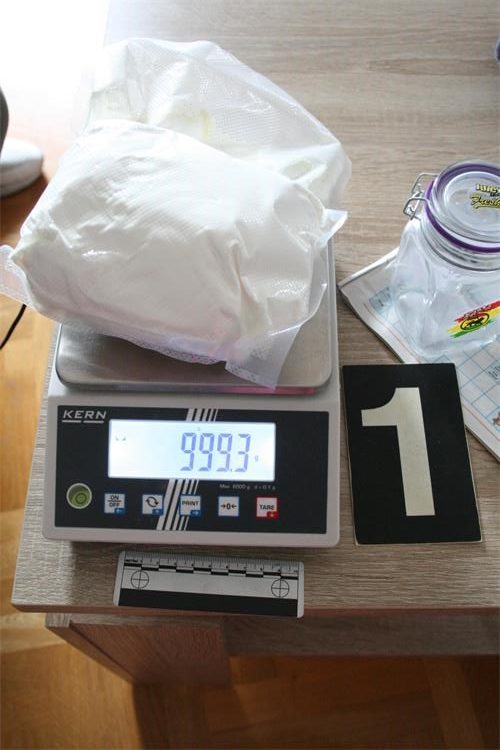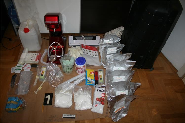 Policijski službenici su u Osijeku temeljem naloga suda obavili pretragu doma i drugih prostorija kojima se koristi 25-godišnjak, prilikom koje je pronađeno i uz potvrdu oduzeto 1.994,2 grama amfetamina, 477 grama paste konoplje, 1,8 grama konoplje, jedna precizna digitalna vaga, više aluminijskih vrećica materije za proizvodnju amfetamina ukupne težine 12,65 kilograma, uređaji za mjerenje PH vrijednosti kao i ostali pribor koji je korišten za daljnju proizvodnju amfetamina.