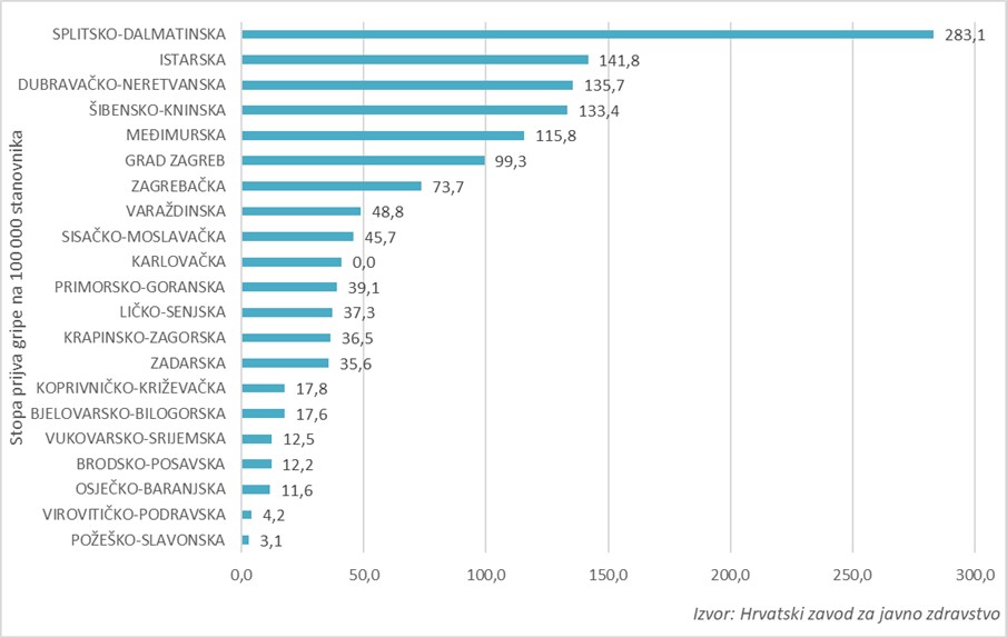 Najviše oboljelih bilježi se u Splitsko-dalmatinskoj, Istarskoj, Dubrovačko-neretvanskoj i Šibensko-kninskoj županiji. Dosad su zabilježena i dva smrtna slučaja, a stručnjaci upozoravaju kako će broj oboljelih i preminulih tijekom zime rasti.