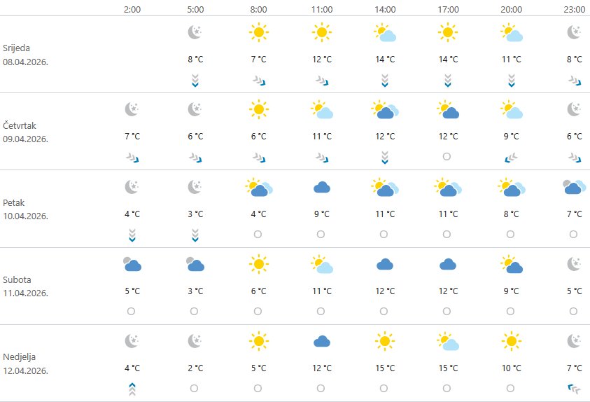 Zahlađenje neće dugo potrajati jer se već od nedjelje očekuje povratak na uobičajeno svježe vrijeme za ovo doba godine.