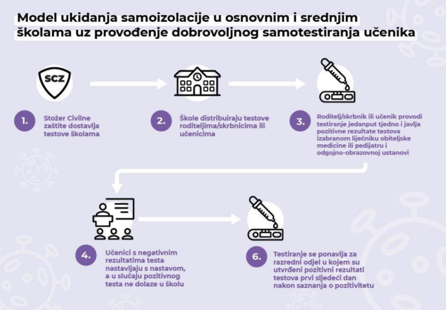 Po učeniku je potrebno podijeliti dva testa što je dovoljno za dva tjedna, a onda će tijekom praznika doći druga tranša