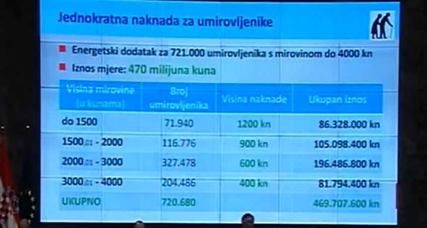 tzv. energetski dodatak dobiti 721.000 umirovljenika s