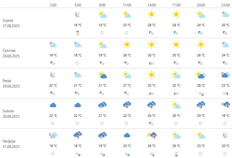 U četvrtak još uvijek pretežno sunčano pa i još toplije uz dnevnu vrućinu, a u petak i sve izraženiju sparinu