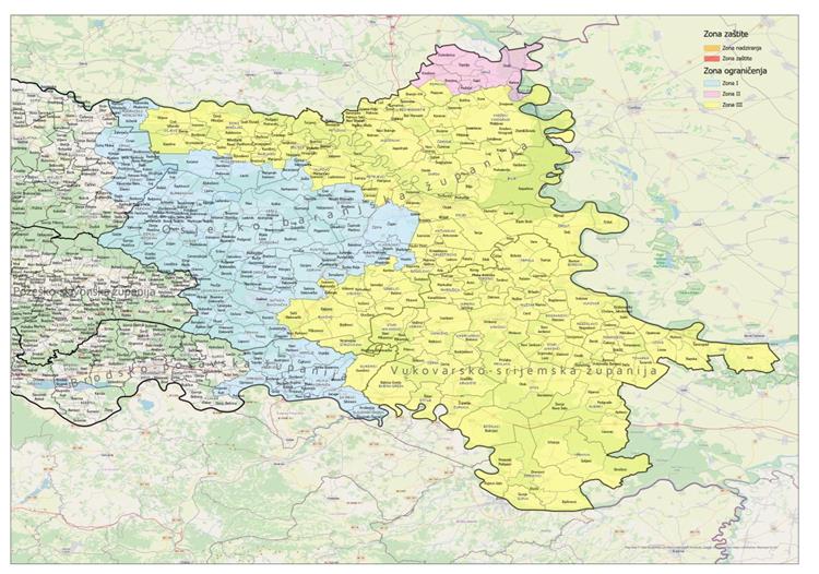 Posljednja zona zaštite koja je danas ukinuta obuhvaćala je naselja Lug, Podunavlje i Vardarac u Općini Bilje te okolna naselja unutar 10 kilometara kao zonu nadziranja.
