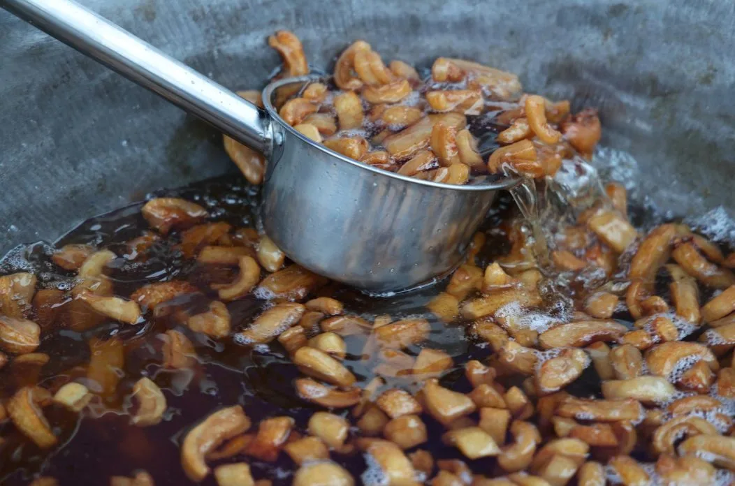 Pravi trenutak da se doda mlijeko također je presudan – ono daje čvarcima prepoznatljivu boju. Nakon toga slijedi cijeđenje, pri kojem se koriste različite tehnike kako bi čvarci bili što hrskaviji, na zadovoljstvo posjetitelja.