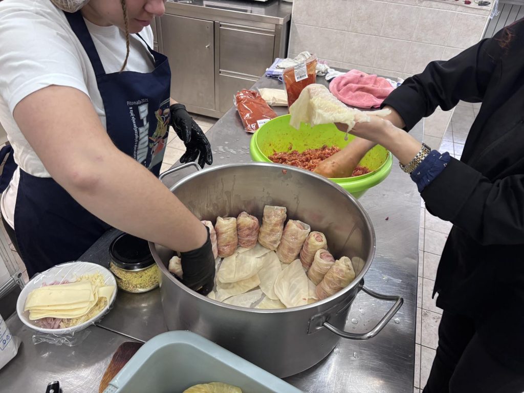 Nešto kasnije nego pri pravoj svinjokolji, oko 7.30, okupili su se učenici Srednje strukovne škole “Marko Babić“ iz Vukovara i u suradnji s Udrugom kuhara i slastičara Vukovarsko-srijemske županije priredili ovu pravu slavonsku tradiciju.