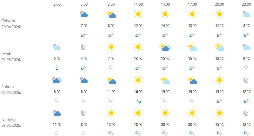 Pred nama je produženi prvomajski vikend koji bi, prema prognozama, trebao proteći u znaku pretežno sunčanog i stabilnog vremena, no uz izraženo hladna jutra.